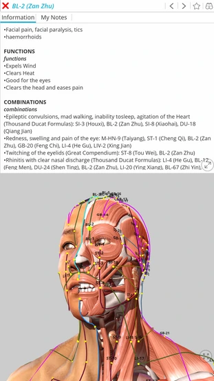 Extensive acupoint database in 3D. Different names for a point incl Chinese and pinyin, effects, how to apply acupuncture and moxibustuon. I especially love that you can view points relative to bones and internal organs. Really great and useful app. Thank you for your effort. I would buy such an app...