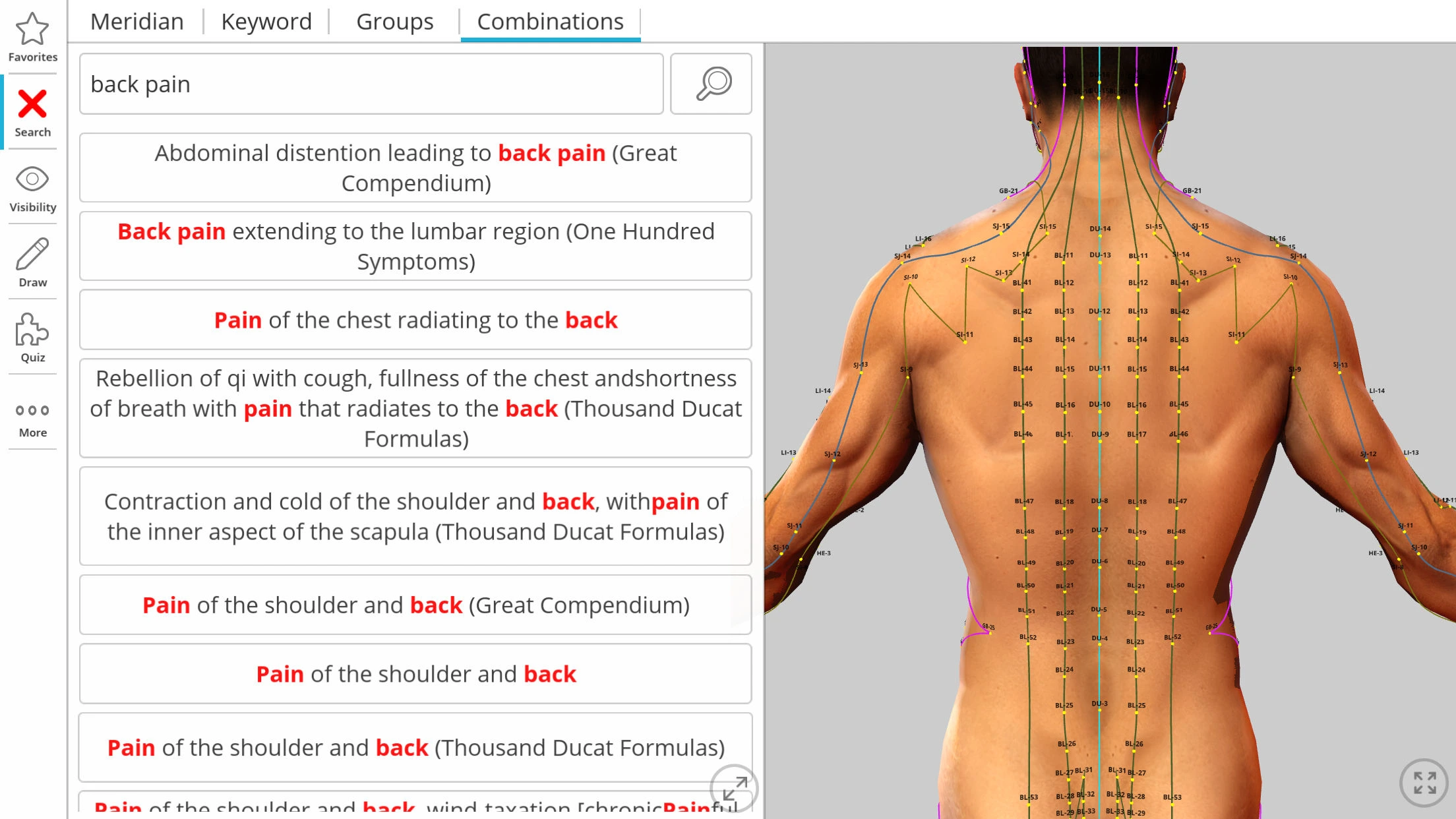 This is helping me in my shiatsu studies in a great way. It's a great visual aid and I really appreciate the options to search by symptom and detailed description of the point location.
